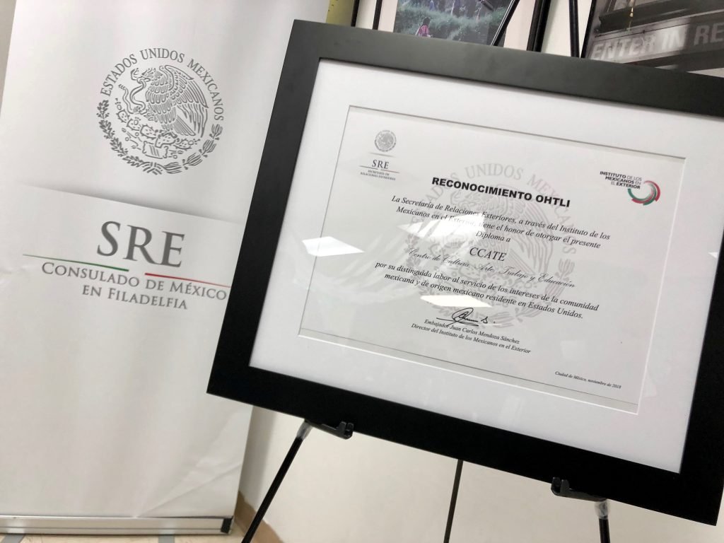 The Mexican government honored the Center for Culture, Art, Training, and Education (CCATE) with the 2018 Ohtli Award last night. The Mexican Ministry of Foreign Affairs recognized it as one of the institutions that has improved the lives of Mexican Americans in Montgomery County, Pennsylvania.