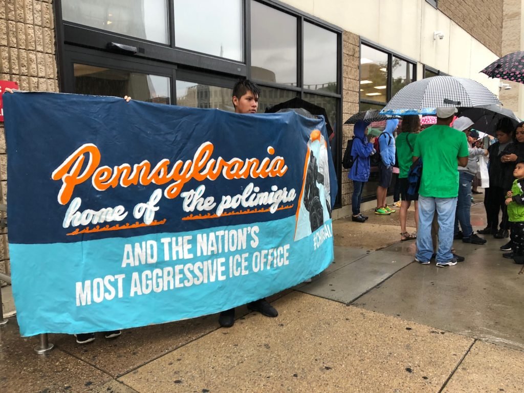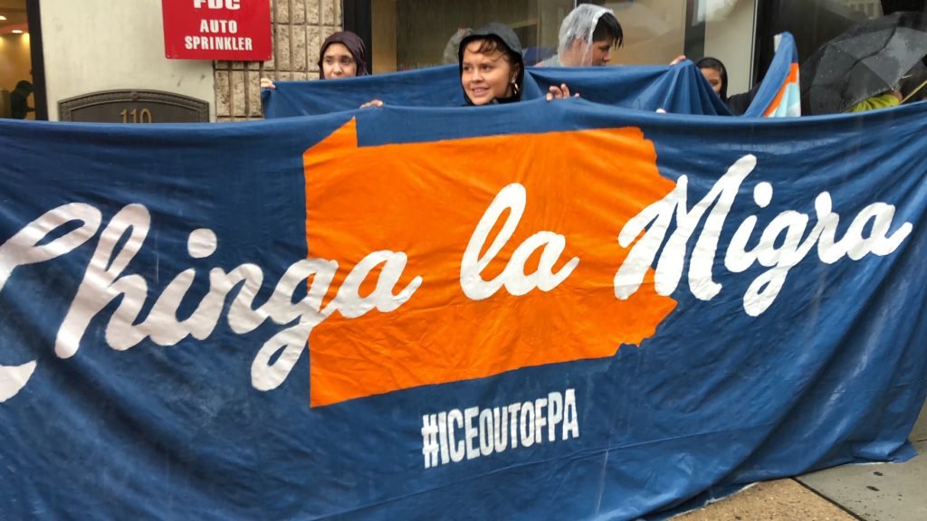 It was pouring with rain, but that didn’t stop the #ChingaLaMigra protest in Philadelphia. Representatives from Juntos and MiJente organized the ninth national protest yesterday afternoon, with the same goal: to demand the permanent closure of Immigration and Customs Enforcement (ICE) offices .