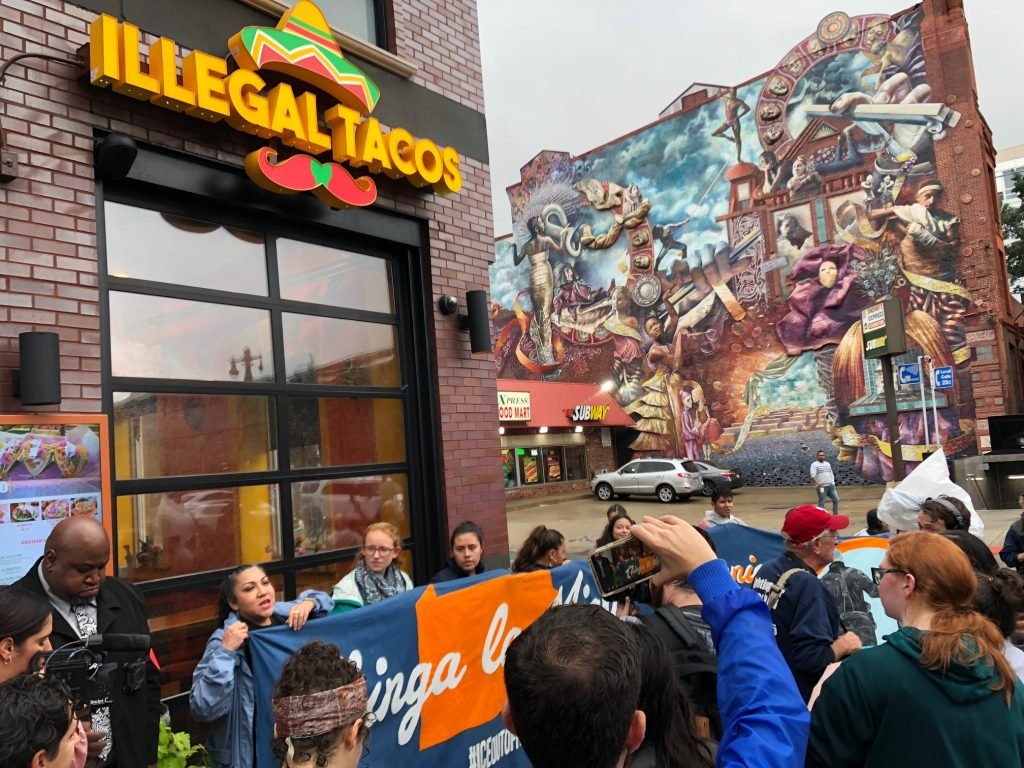 #ChingaLaMigra protest at a local restaurant in Philadelphia
