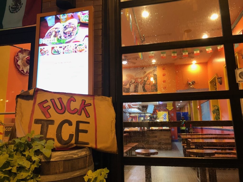 “Fuck La Migra and your racist tacos”shouted a group of between 30 and 40 protesters in front of the restaurant, demanding the name of the establishment be changed.
